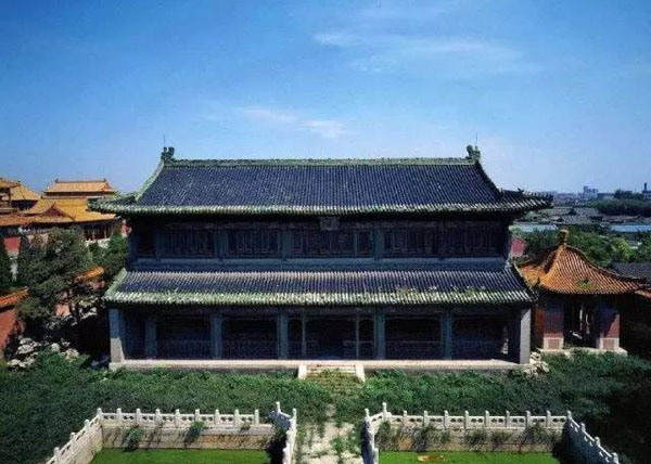 科全書《四庫全書》所建的樓閣,書忌火,以黑瓦(wǎ)為頂,寓含著(zhe)“以水克(kè)火”之意。而窗(chuāng)柱等不飾紅(hóng)金等暖色也(yě)